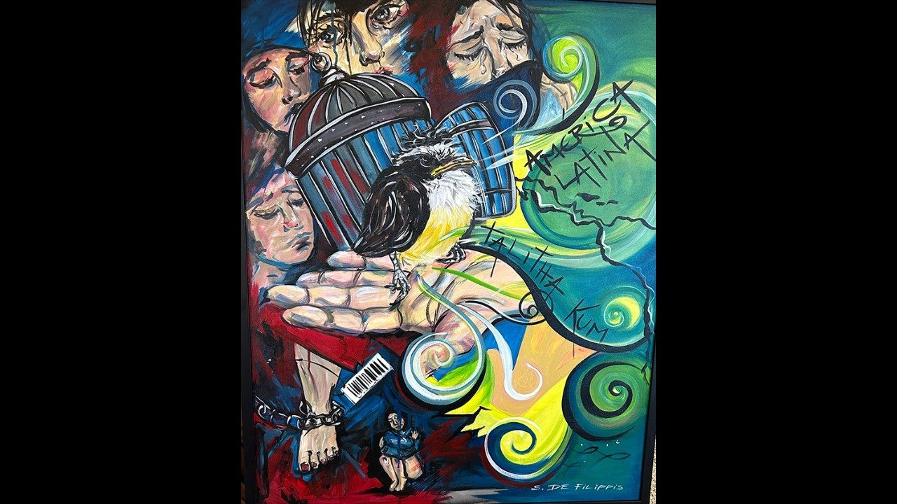 The sisters presented Her Majesty with a symbolic painting created by Sister Sandra De Filippis of Talitha Kum, the UISG’s global anti-trafficking network. The artwork portrayed the wounded yet unbroken faces of women and children who survived human trafficking, centered around an outstretched hand releasing a bird a powerful image of pain transformed into freedom and hope. “Even in deep suffering, there can be light, beauty, and renewal,” explained Sister Abby Avelino, International Coordinator of Talitha Kum.