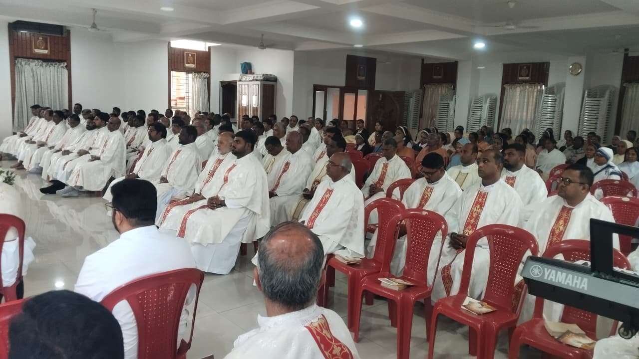 Following the session, the clergy and religious joined in the Holy Eucharist, celebrated by Bishop Serrao. In his homily, the bishop spoke about the sacred dignity of every human person, reminding the assembly that though humanity is shaped from the earth, it carries within it the breath of God. Invoking the inspiring missionary legacy of St Francis Xavier, he called on those present to recommit themselves to evangelization marked by humility, perseverance, and closeness to the people.