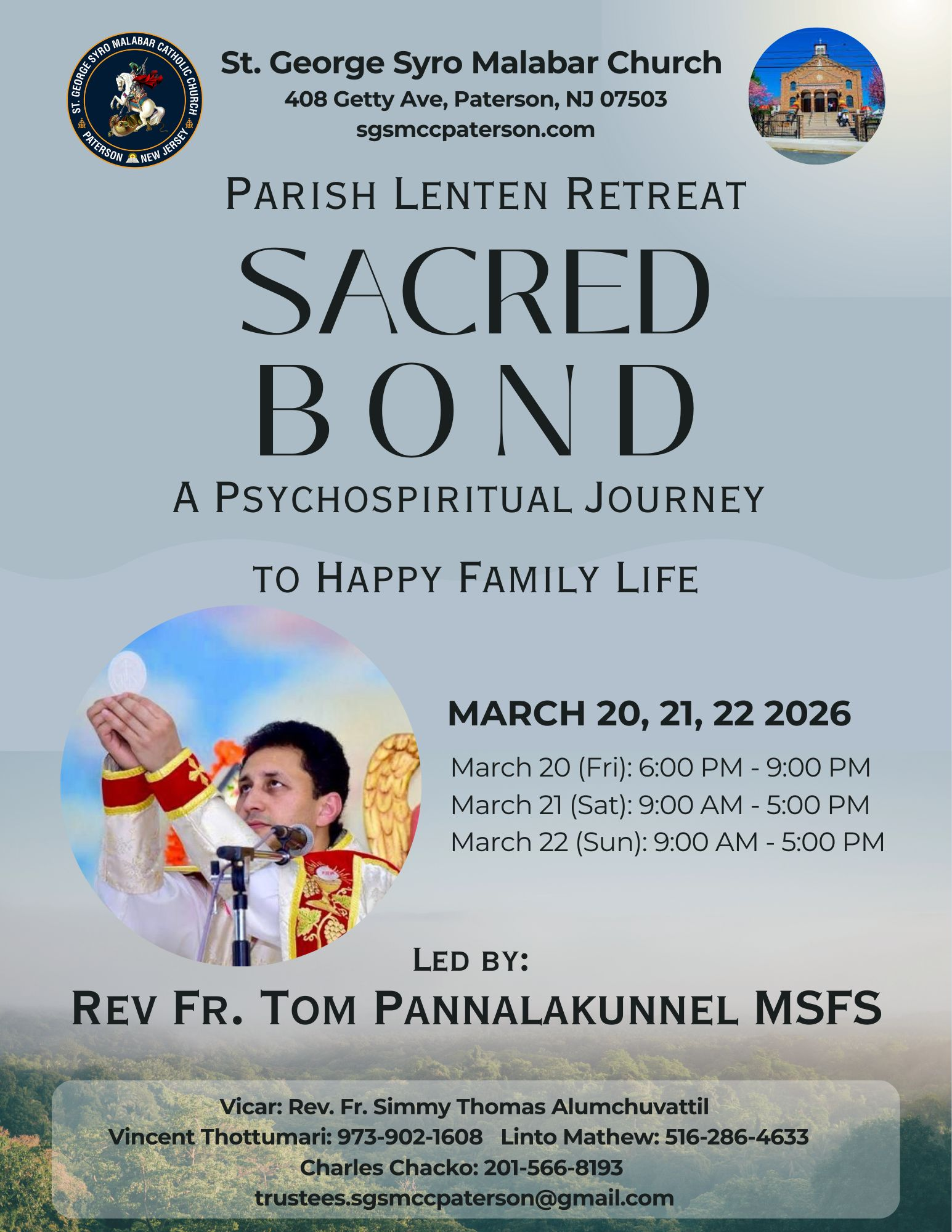 Paterson, NJ: St. George Syro Malabar Catholic Church, Paterson, New Jersey, will host its Parish Lenten Retreat 2026 from March 20 to March 22, 2026, offering the faithful an opportunity for spiritual renewal during the Lenten season.